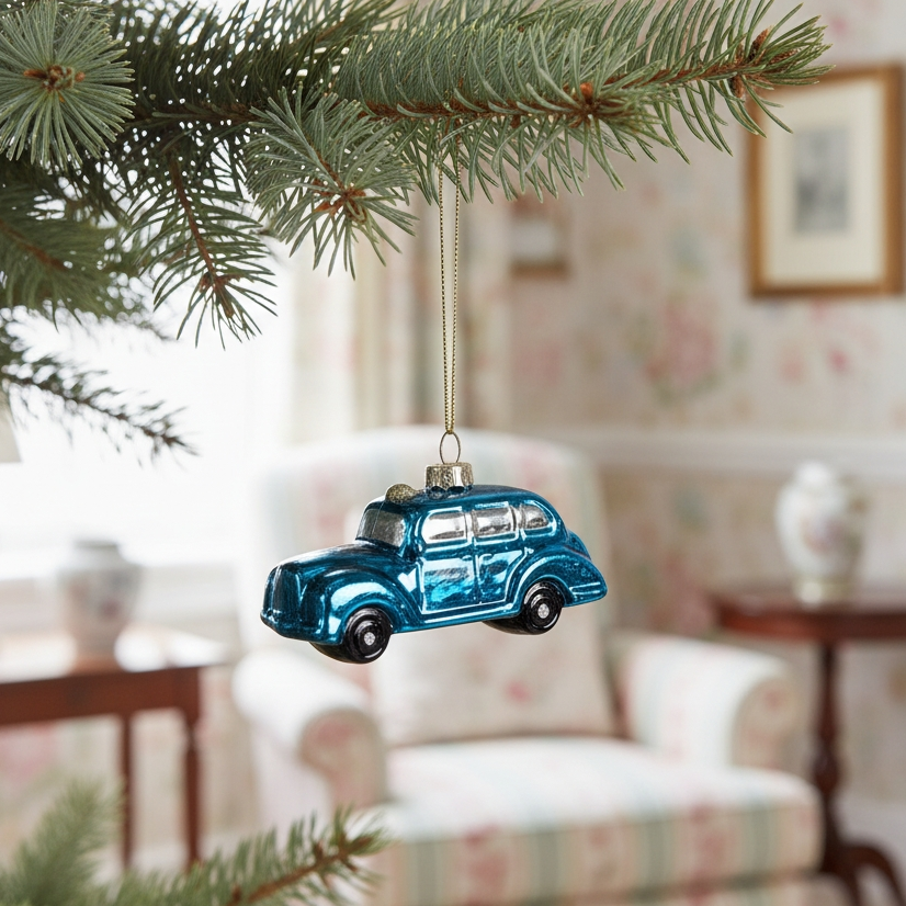 Entdecken Sie unseren zauberhaften Christbaum-Glasschmuck "Automobil". Eine perfekte Wahl für alle, die ihren Weihnachtsbaum ausdrucksvoll gestalten möchten.