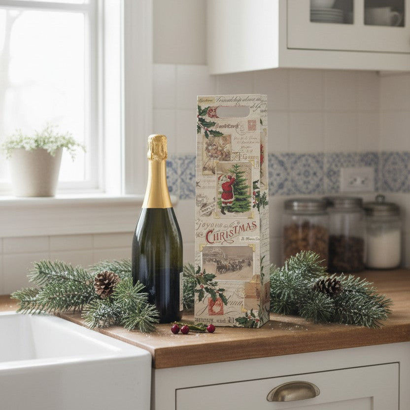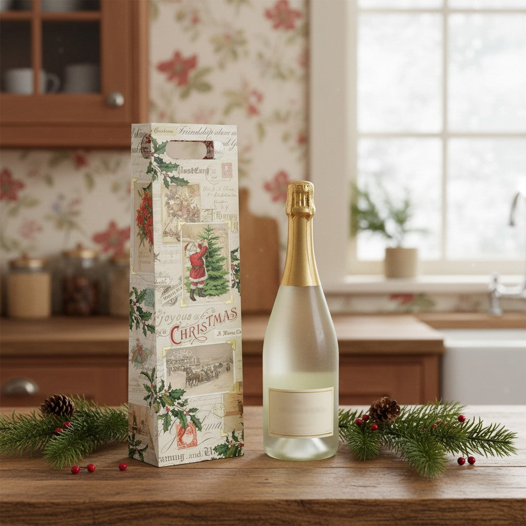 Geschenktasche Flasche Vintage Weihnachtskarten