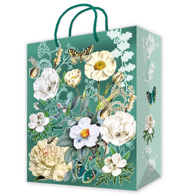 Geschenktasche mit prachtvollen Blumen und Schmetterlingen