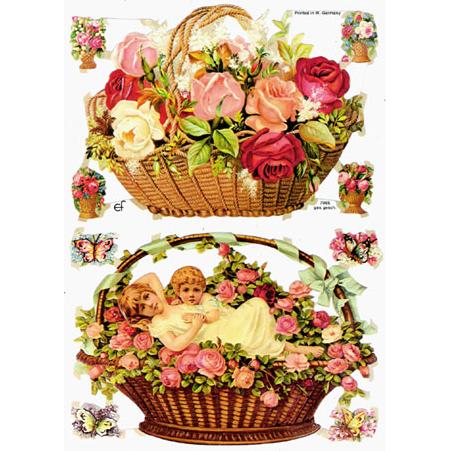 Glanzbild/Poesiebild Blumen Körbe Kinder