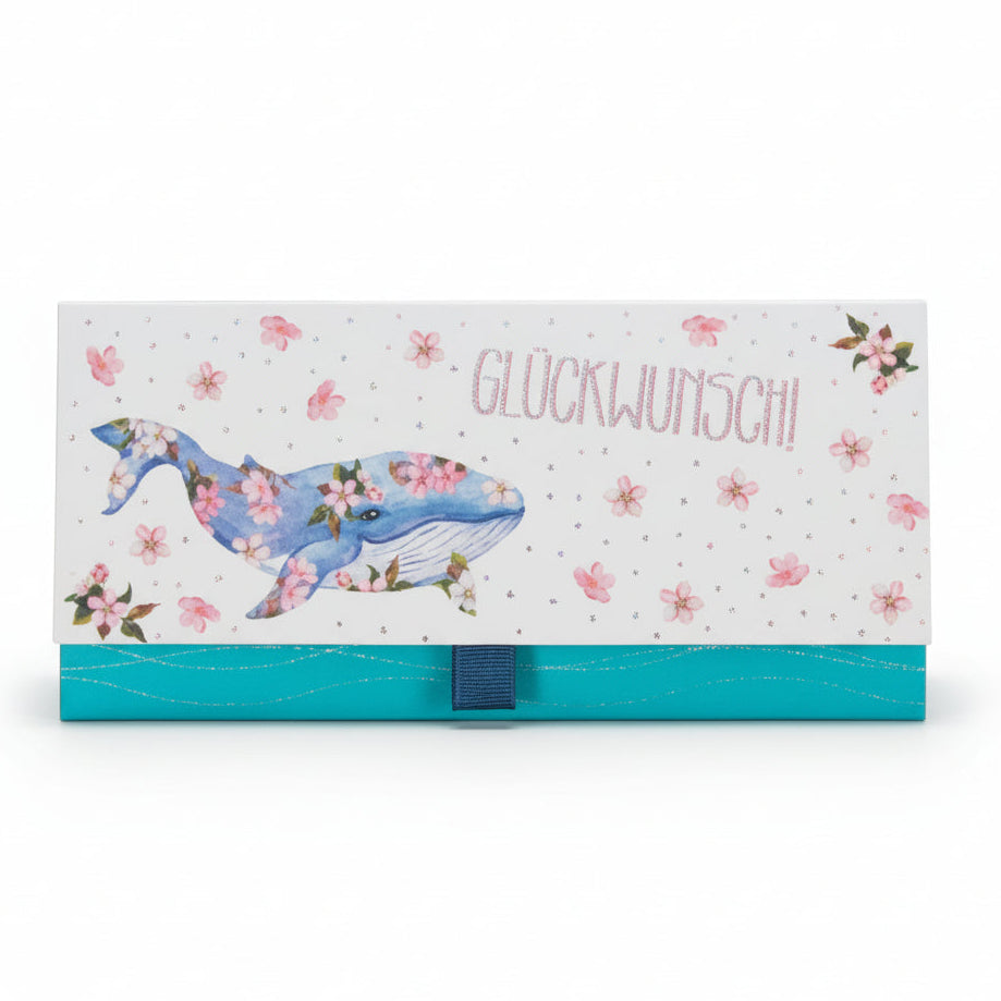 Geschenkumschlag Wal mit Blumen
