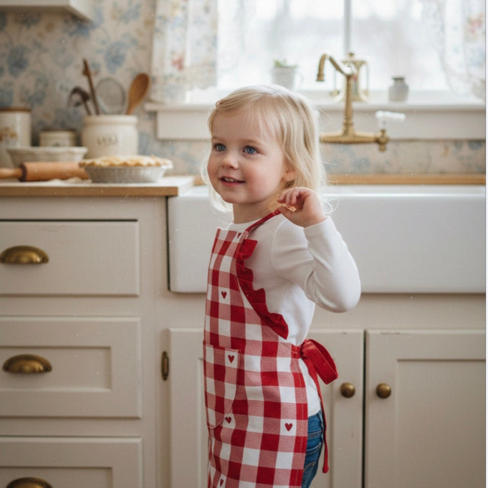 Entzückende Schürze für Kinder - Herzen, Karomuster und ein Rüschenbesatz verleihen der Schürze einen einzigartigen Landhaus Look