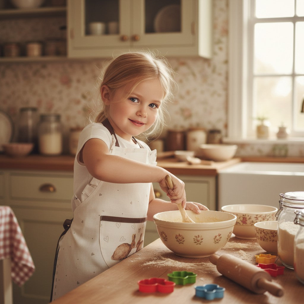 Entzückende Schürze für Kinder mit Kaninchen und Rüschen