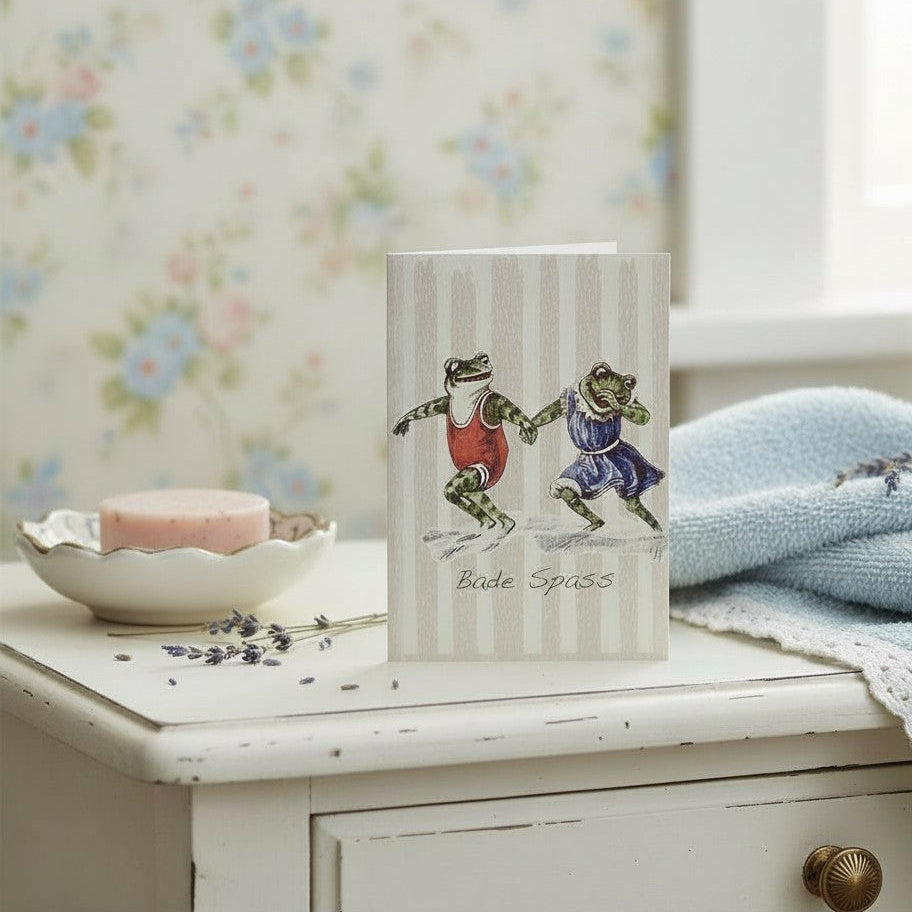 Grußkarte Vintage Badespaß Frösche