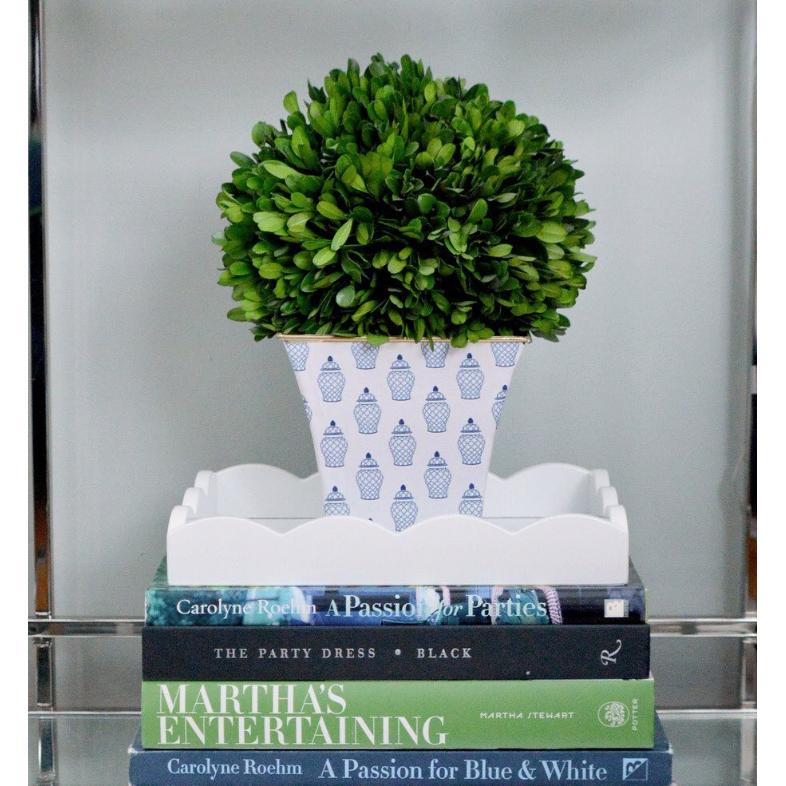 Handgefertigt aus Verbundmaterial, mit Dekorpapier ummantelt und mit einem polierten Goldrand versehen – vier kleine Standfüße sorgen für einen sicheren Stand.