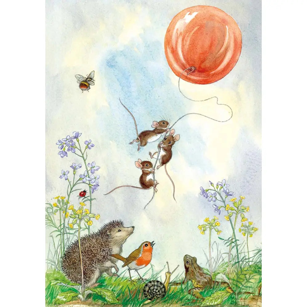 Postkarte Mäuse mit Luftballon