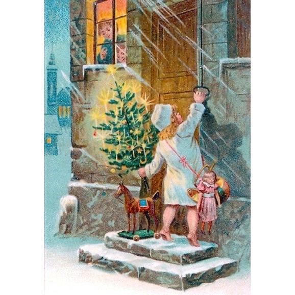 Postkarte Weihnachten Christkind klingelt
