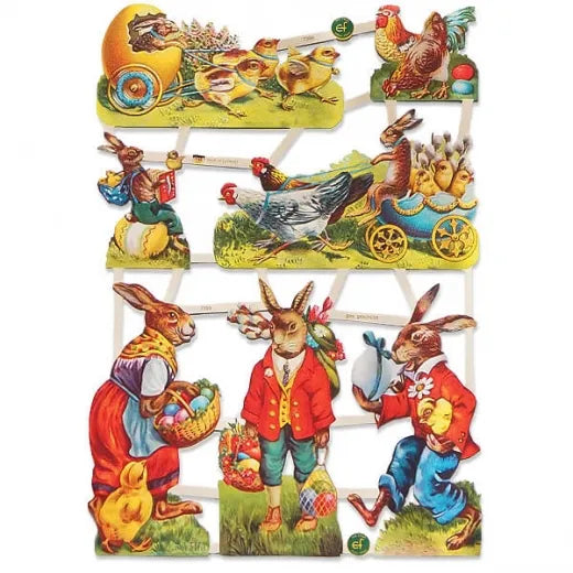 Glanzbild/Poesiebild Osterhasen, Küken mit Glitter