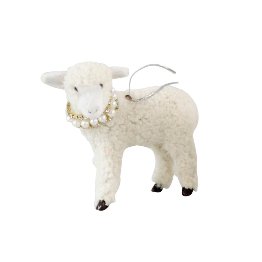 Jedes der Schafe trägt ein individuelles Halsband, das mit Perlen oder kleinen Glitzersteinchen bestickt ist. Einige tragen ein goldenes Halsband mit kleinen Glöckchen