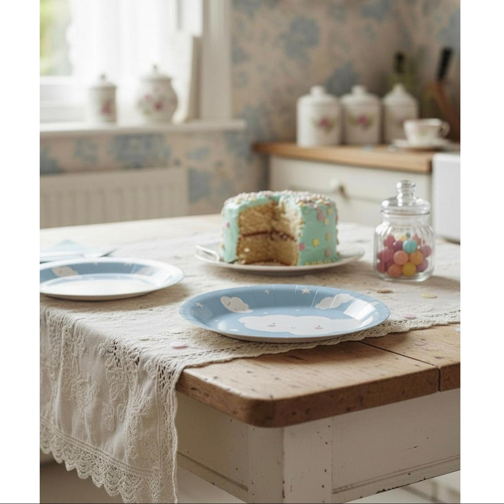 Serviere Gästen die leckersten Kuchen und Sandwiches auf diesen blauen, stabilen Tellern.
