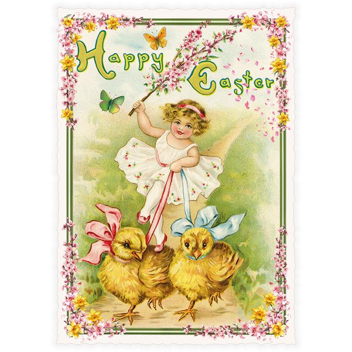 Postkarte Kind mit Hahn Ostern Nostalgie