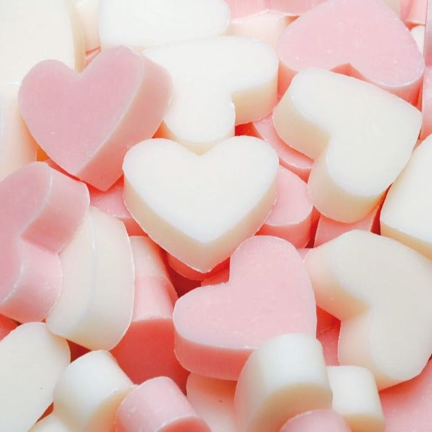 winzige Schafmilchseifen in Herzform... diese Herzchen werden gern in kleiner Zahl als duftende Aufmerksamkeiten verschenkt oder in großer Zahl als Streumotive und Deko bei Hochzeiten, Taufen und anderen schönen Feierlichkeiten verwendet