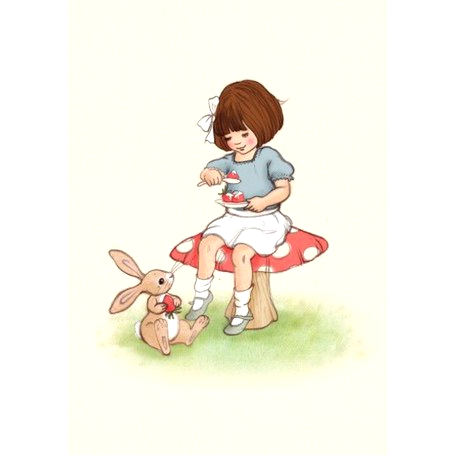 Postcard Belle and Boo with delicious strawberries and whipped cream