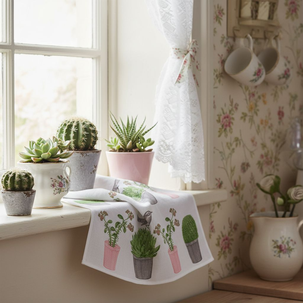 No matter who has to do the drying, you can bet they'll do it in style with our delicious Cactus & Bird tea towel...