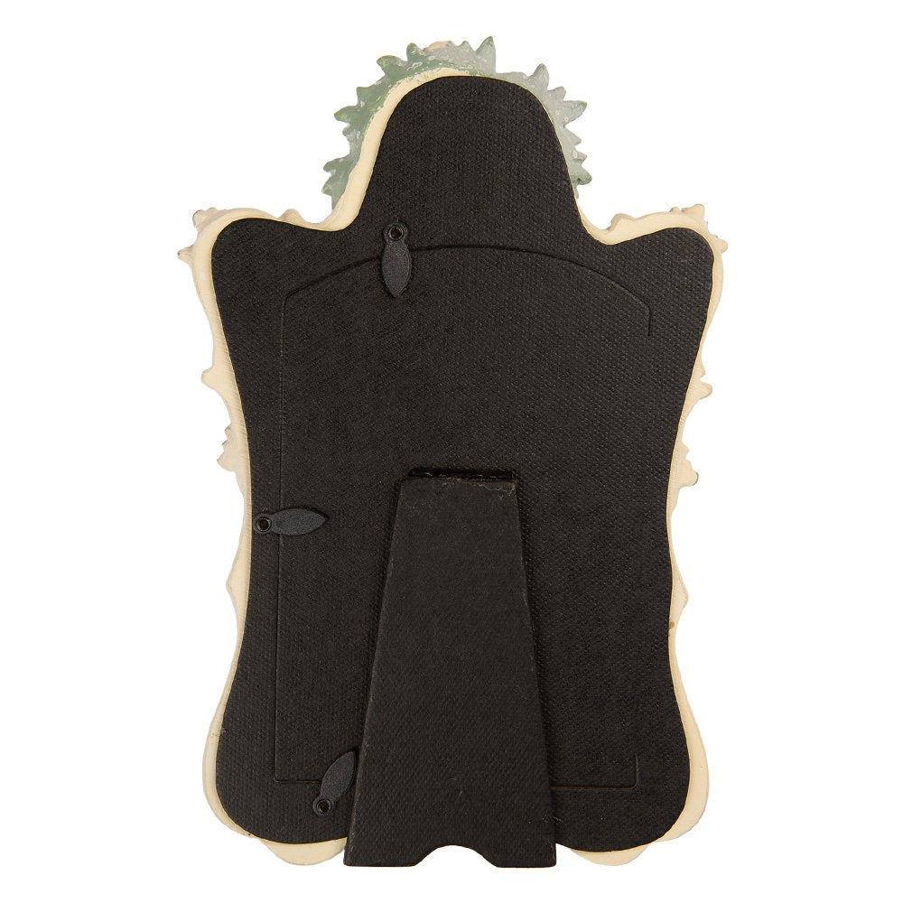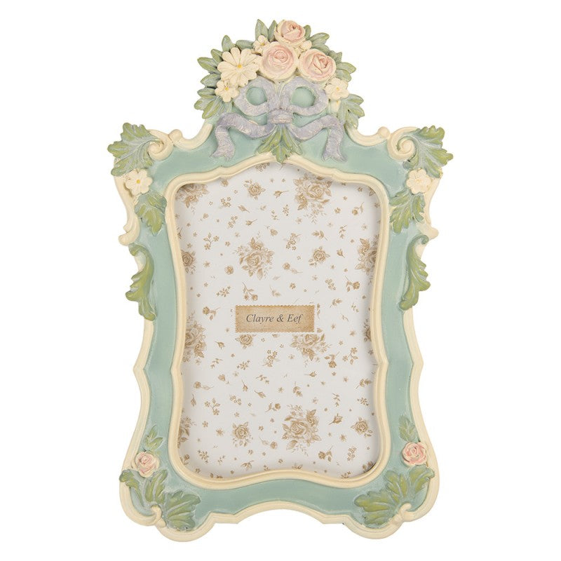 An opulent picture frame with floral decoration for standing upright.