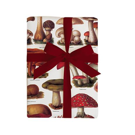 "Funghi" gift wrap is ideal for adding a touch of nostalgia and style to special occasions.