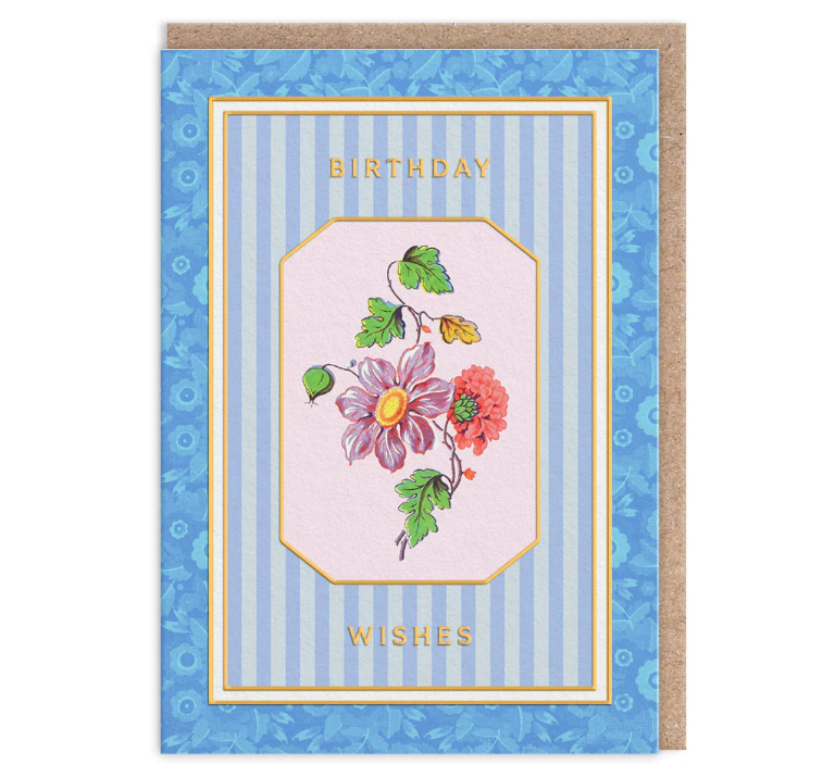 Inspired by botanical motifs from the V&A Museum archives, the "Cottagecore Flower on a Vine" birthday card features a delicate flower winding its way along a vine. Luxurious foil accents enliven the design.