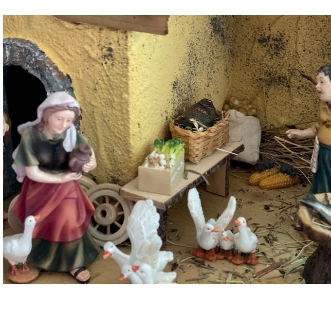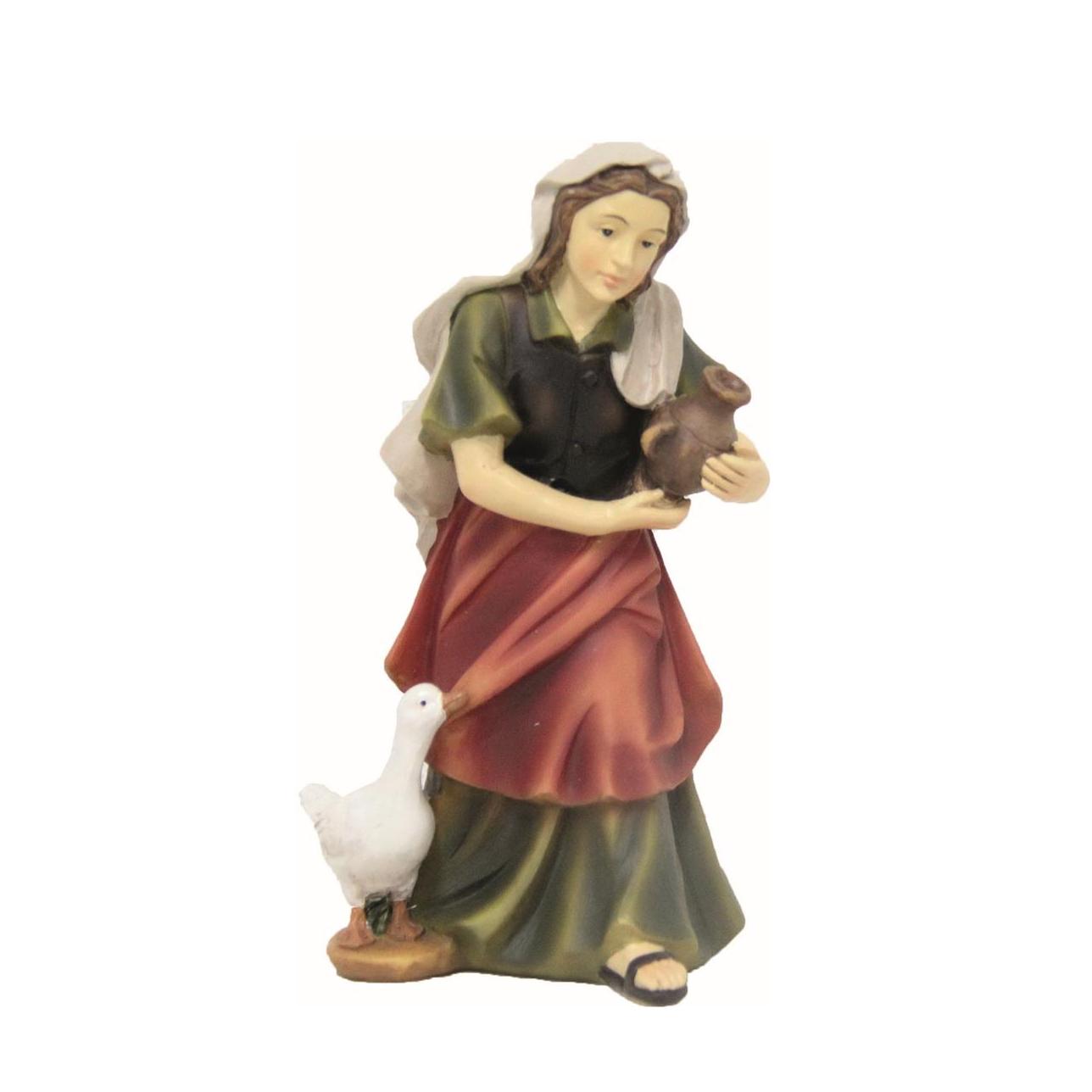 Nativity figure of a maid with a duck