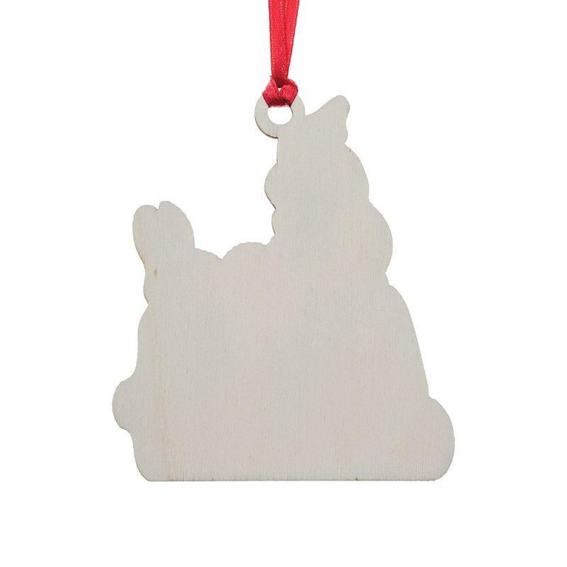 Decorative hanging ornament with red ribbon - Peter Rabbit with snowman