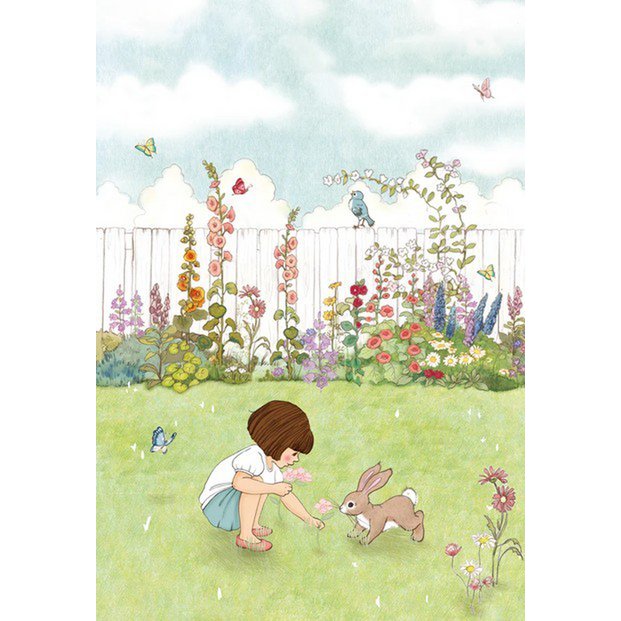 Belle picks flowers in the flower garden with her rabbit friend Boo.