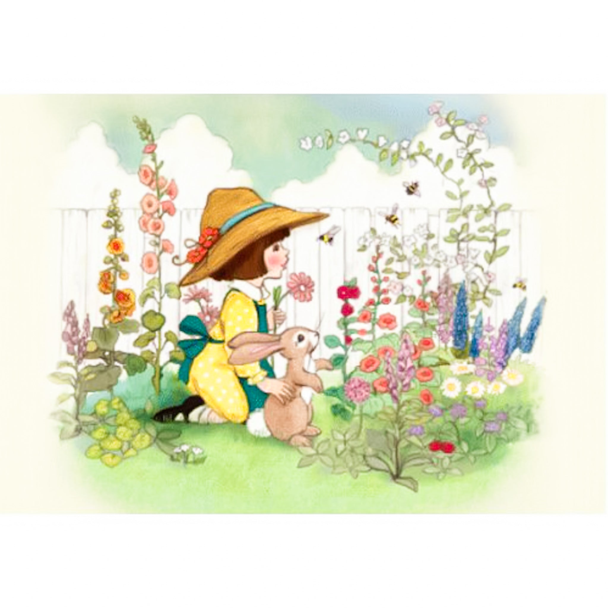 Belle is searching for bees in the garden. With all the beautiful flowers on this card, there are sure to be lots of bees buzzing around. Boo is watching everything attentively beside Belle.