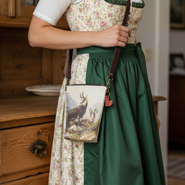 to be carried as a clutch or with a strap to hang around your neck (see sample photo)