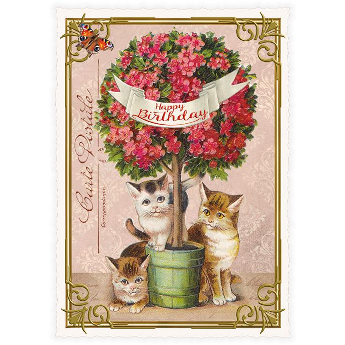 Vintage postcard featuring cats and roses