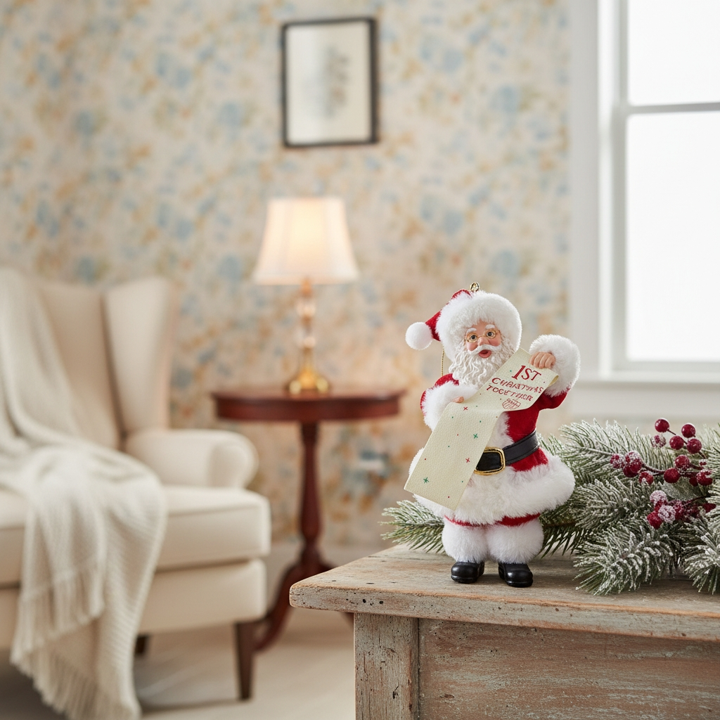 This ornament captures the classic Santa Claus at his best. Bespectacled and holding a long list that says "1st Christmas Together"