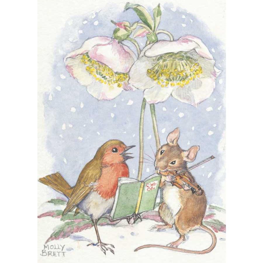 Robin And Mouse Under Christmas Rose... Robin and Mouse under the Christmas Rose