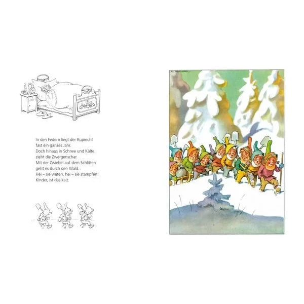 Nach dem Christfest kam der Ruprecht müd ins Zwergenland. Eine große Wunderzwiebel trug er in der Hand. „Pflanzt sie, pflegt sie“, sprach der Alte, „wenn ich lieg im Traum, dann wächst lustig unser neuer Zuckertütenbaum!“
