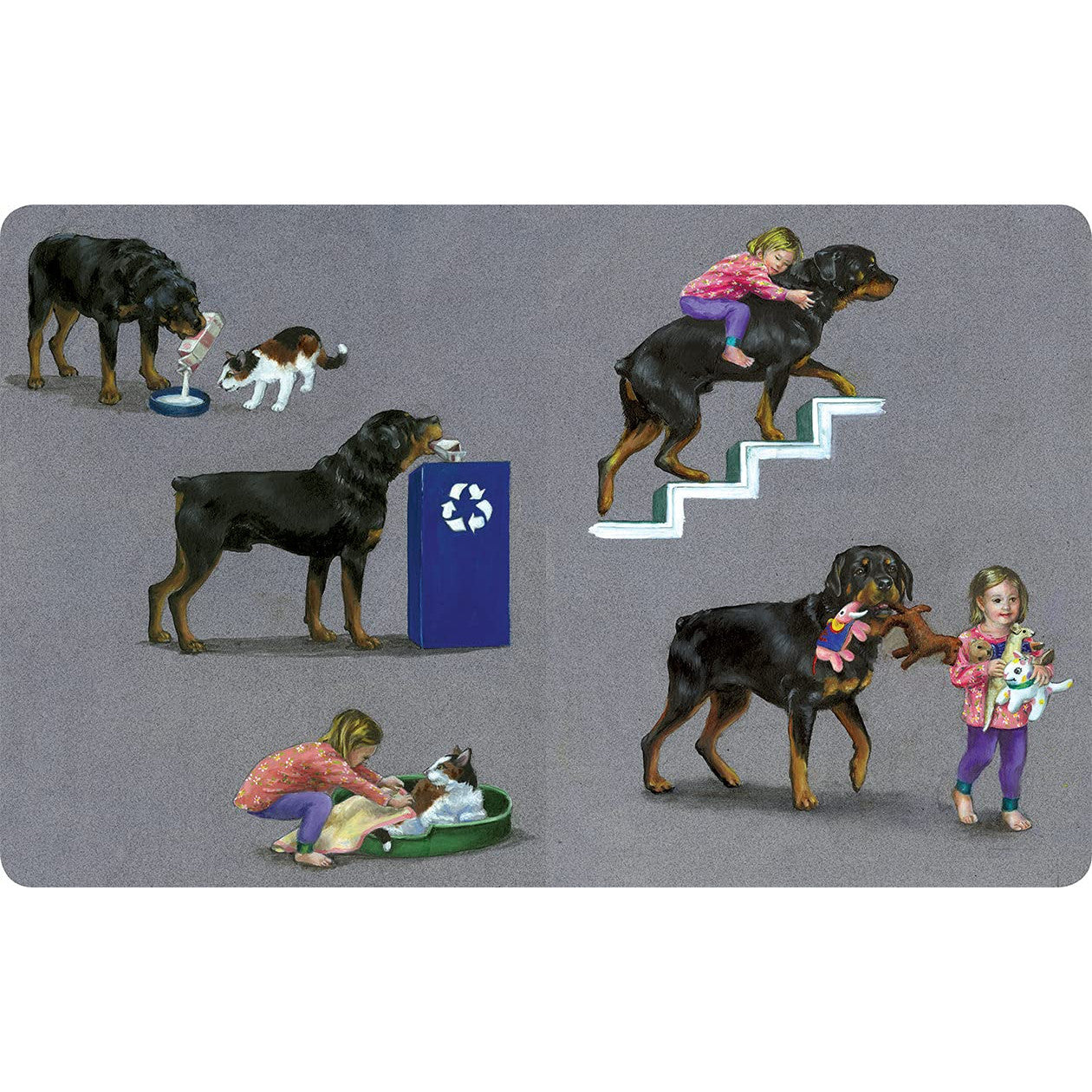 Ansprechende, fast wortlose Erzählung mit dem liebenswerten und etwas schelmischen Rottweiler Carl und seinem kleinen Mädchen Madeleine
