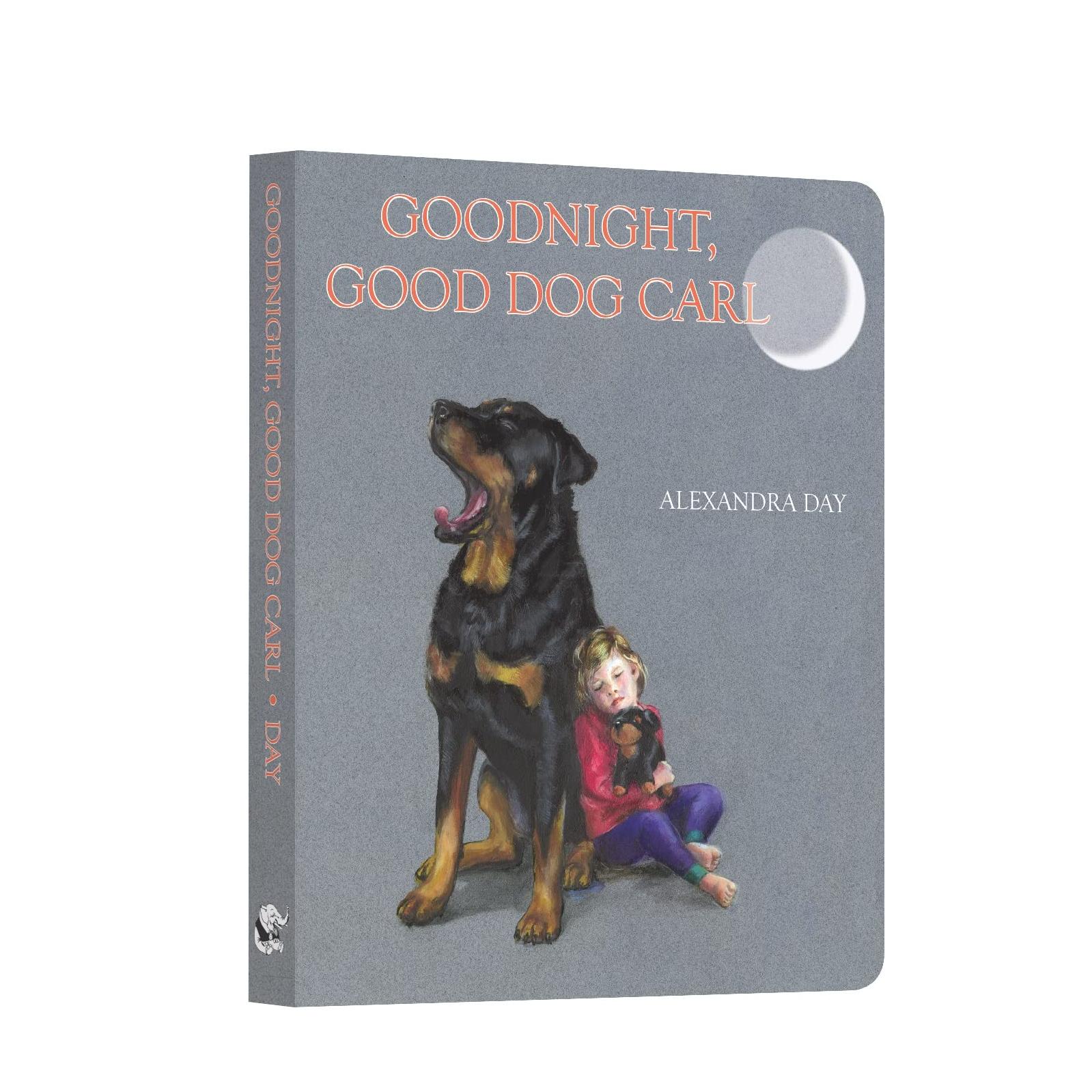In Goodnight, Good Dog Carl bringt Carl alle ins Bett, aber nicht ohne ein paar Spiele, ein Glas Milch und eine Gute-Nacht-Geschichte. Carl vergewissert sich, dass im Haus alles in Ordnung ist (wie es sich für einen guten Hund gehört), und legt sich dann selbst schlafen.
