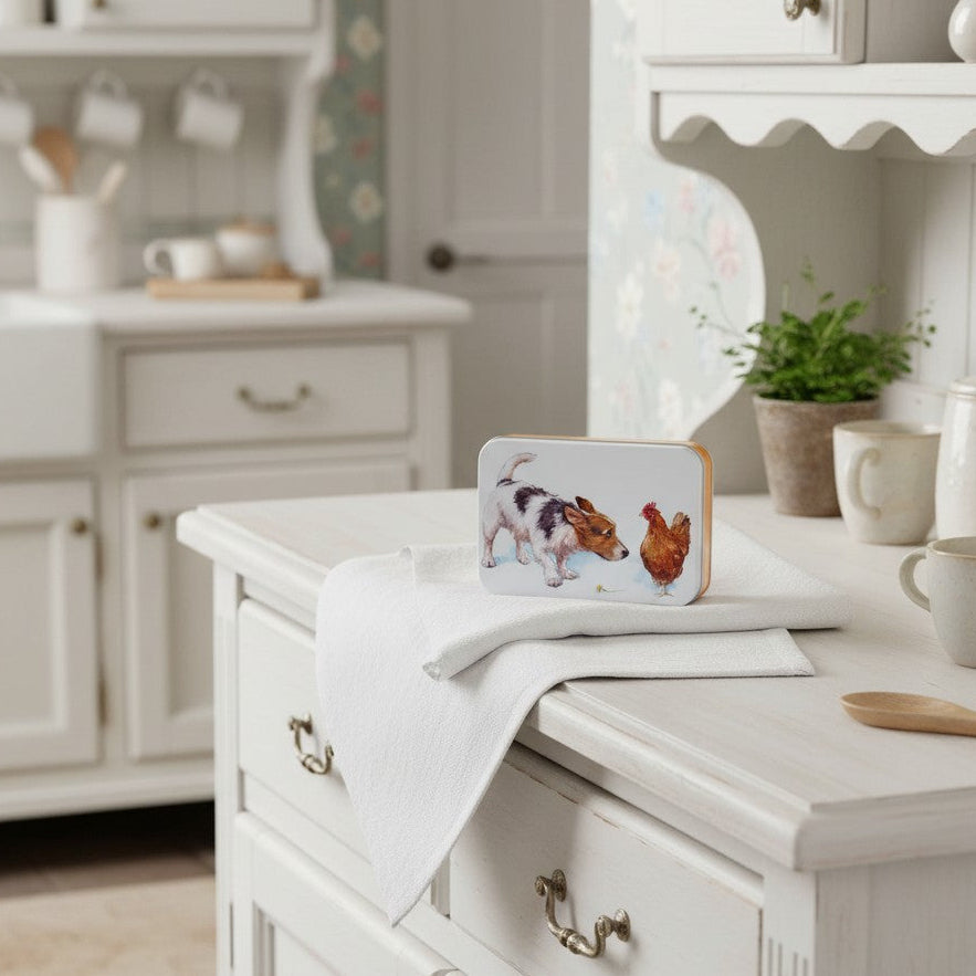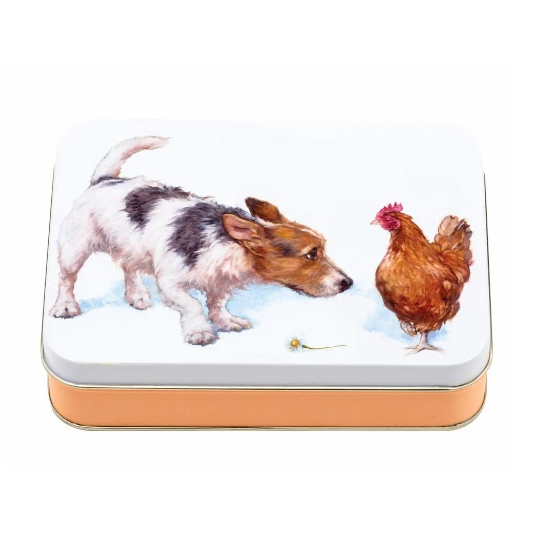 Blechdose mit Hund und Huhn... nicht nur für Hundefans eine Freude