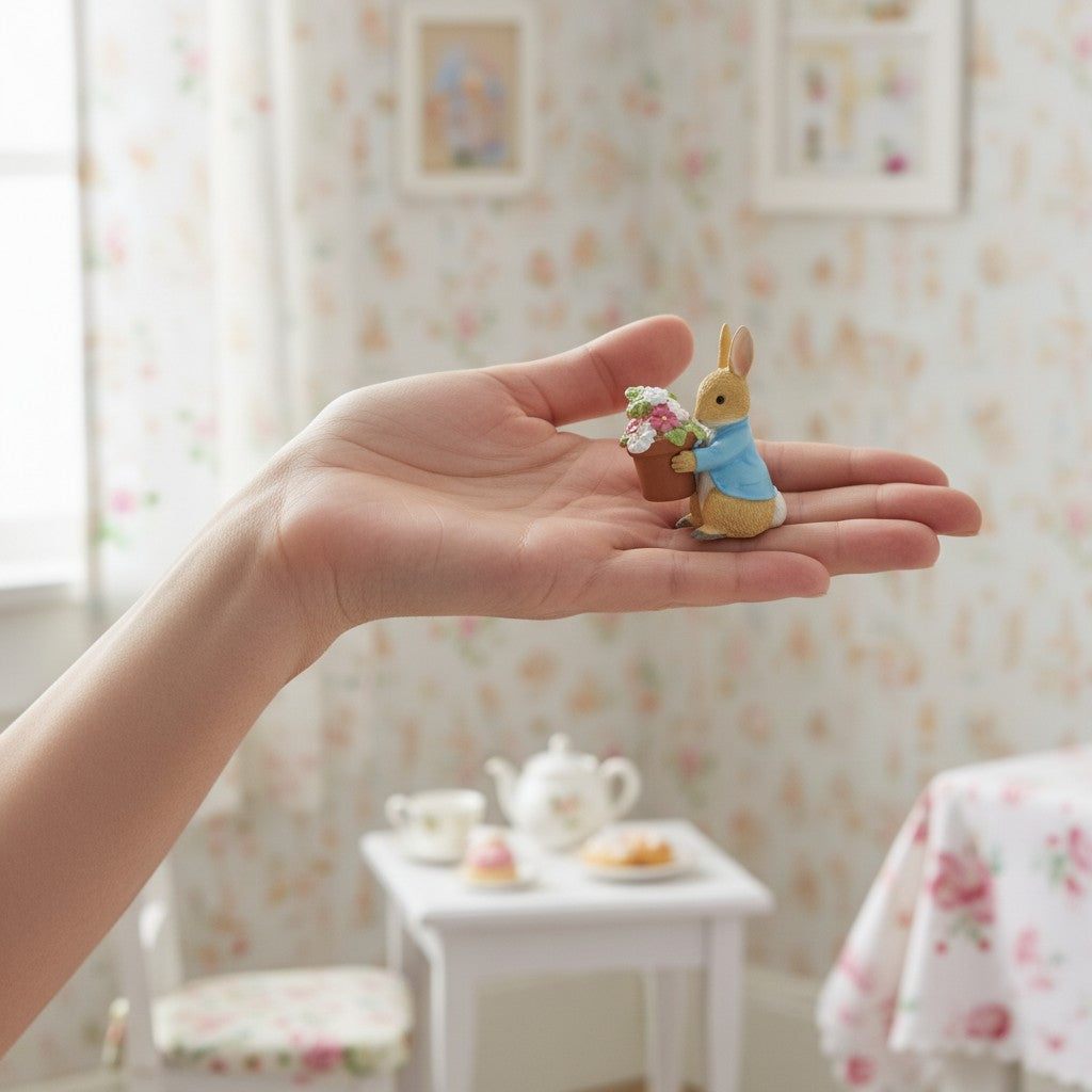 Ob es Liebe, Lachen oder Glück ist, Peter Rabbit bringt immer etwas in Ihre Herzen und dieses Mal ist es ein großer Blumentopf. Diese Figur zeigt Peter mit einem seiner Lieblingssnacks.
