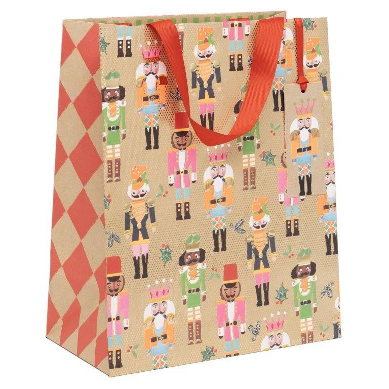 Mit fröhlichen Illustrationen traditioneller Nussknacker verbreitet diese Tüte garantiert Freude und Wärme.