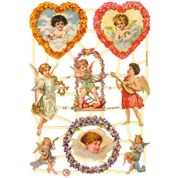 Glanzbild/Poesiebild Herzen Blumen Putten Engel