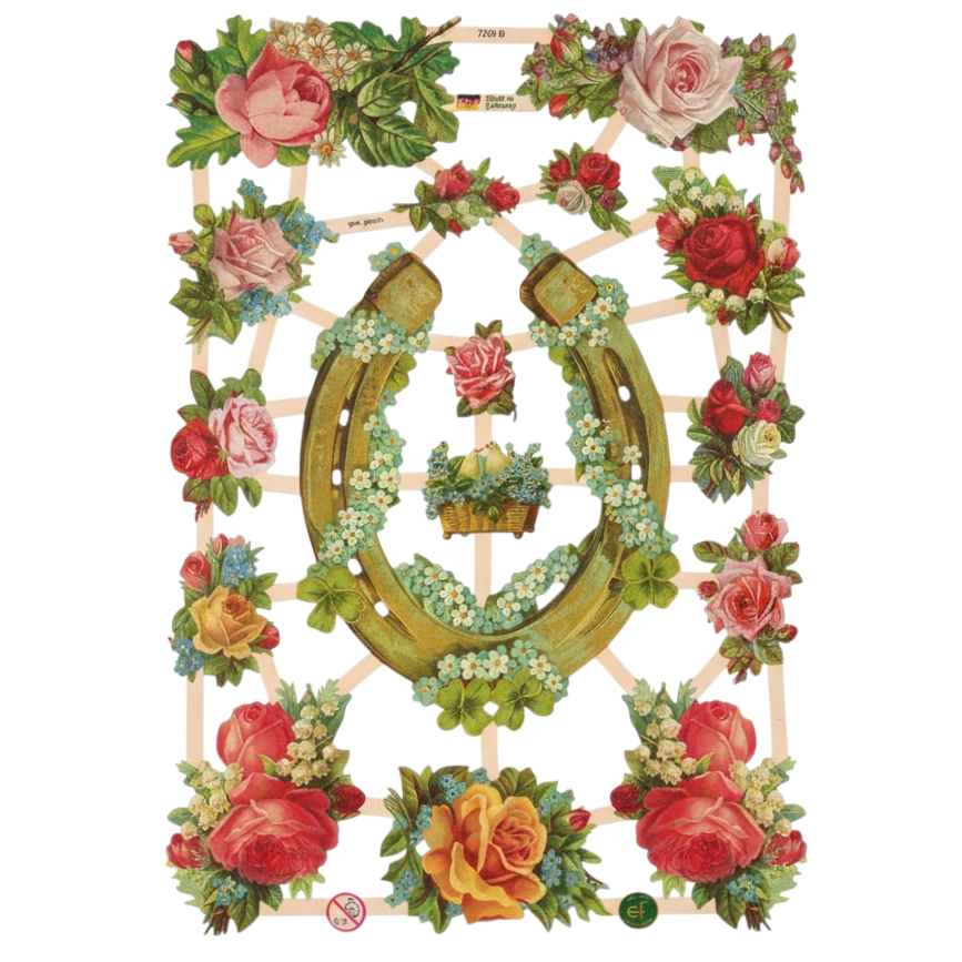 Glanzbild/Poesiebild Rosen Blumen Hufeisen