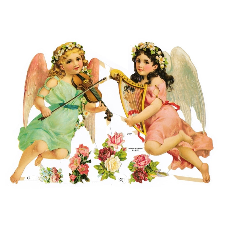 Glanzbild/Poesiebild Engel Blumen Rosen Musik