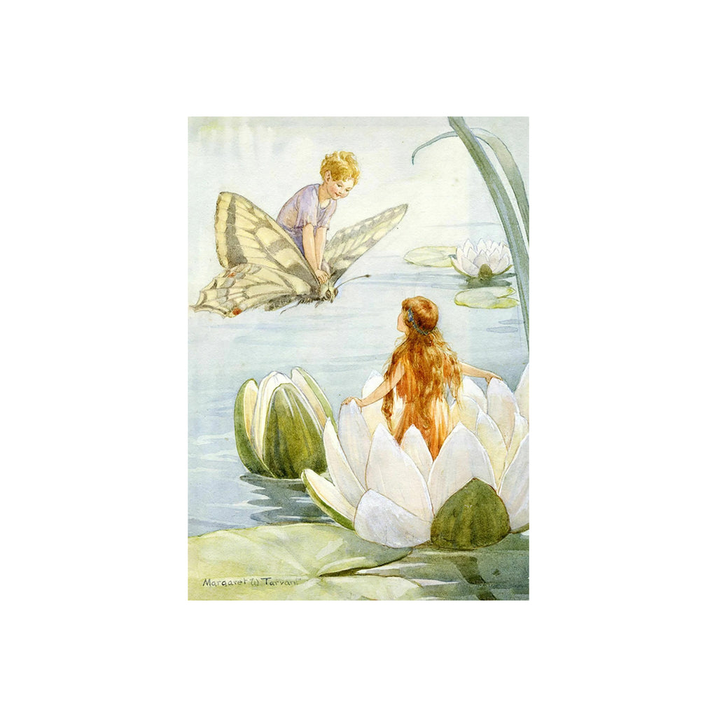 Mini Klappkarte auf Büttenpapier - Elfen mit Seerosen