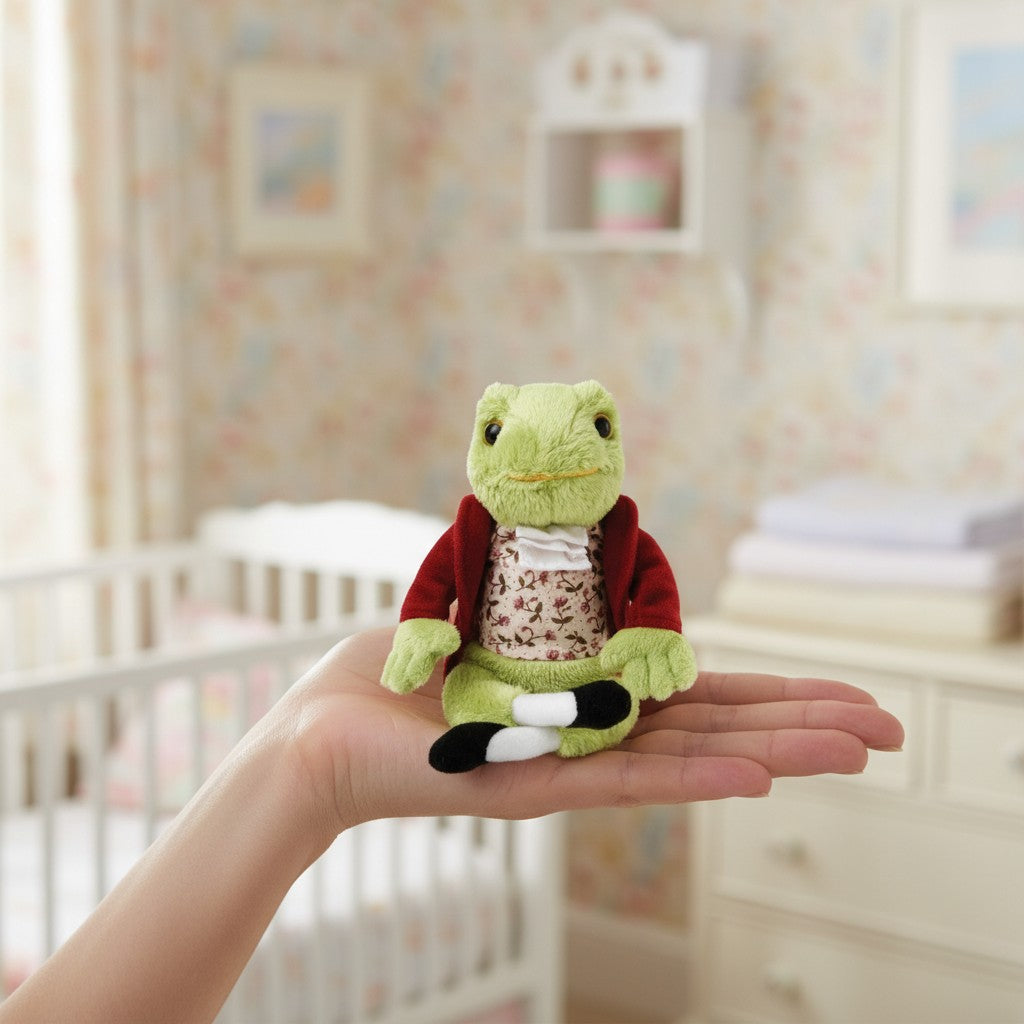 Dieses kleine Mr. Jeremy Fisher Plüschtier ist aus wunderschönem, weichem Stoff gefertigt und trägt genau die Kleidung, die Beatrix Potter illustriert hat, sowie eine schicke rote Jacke..