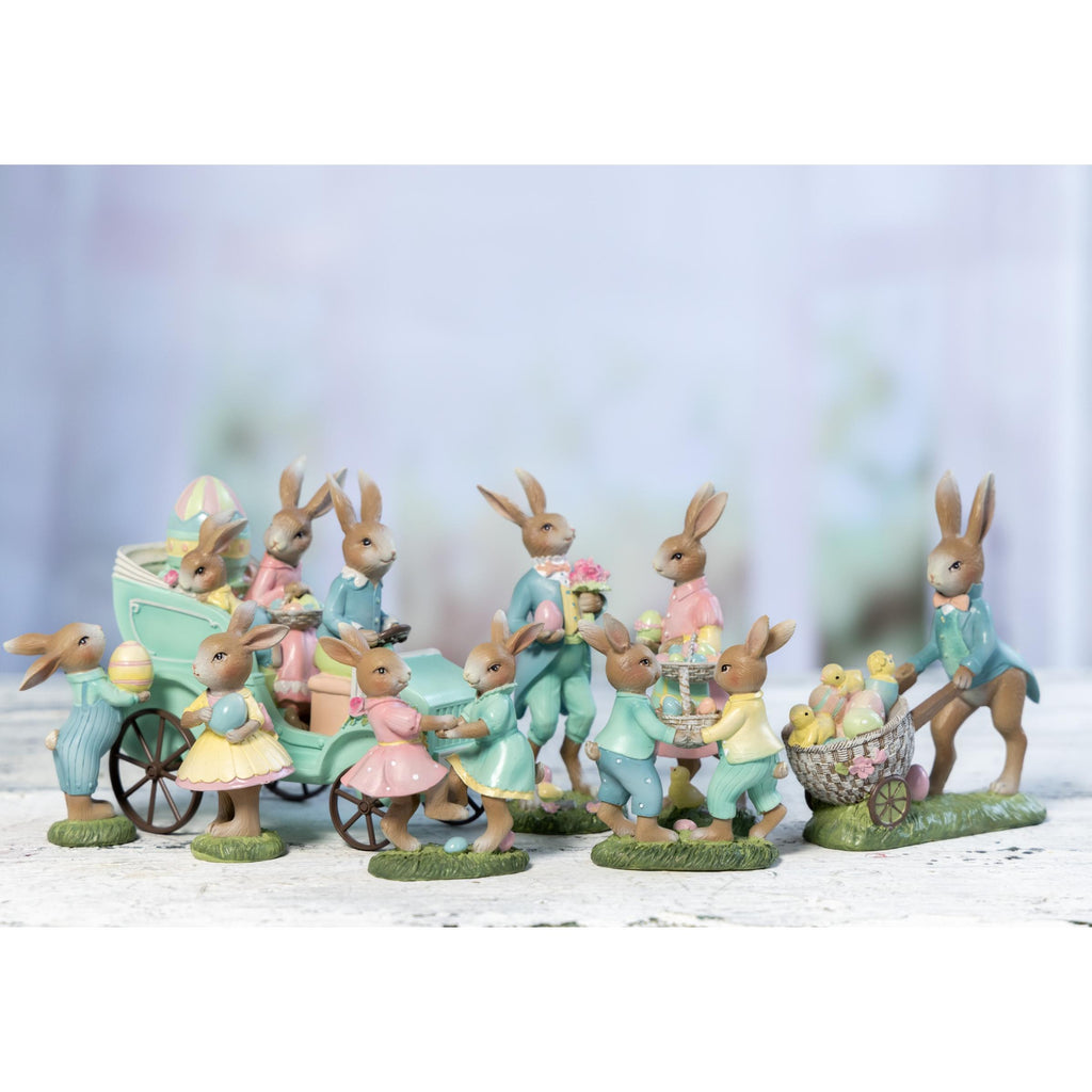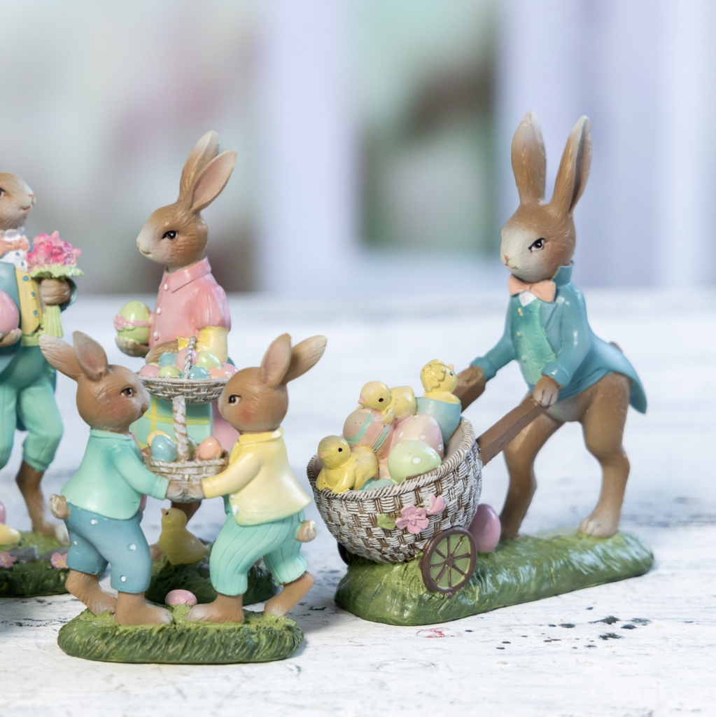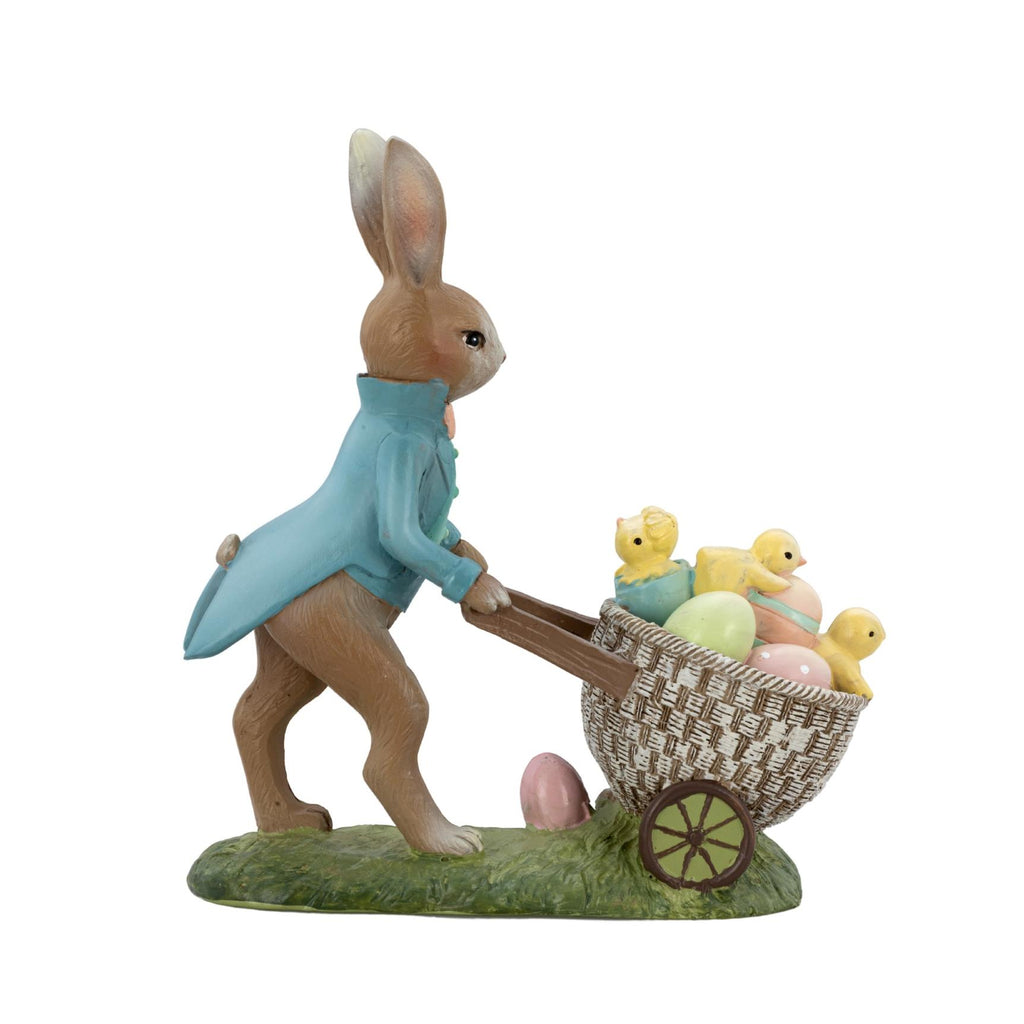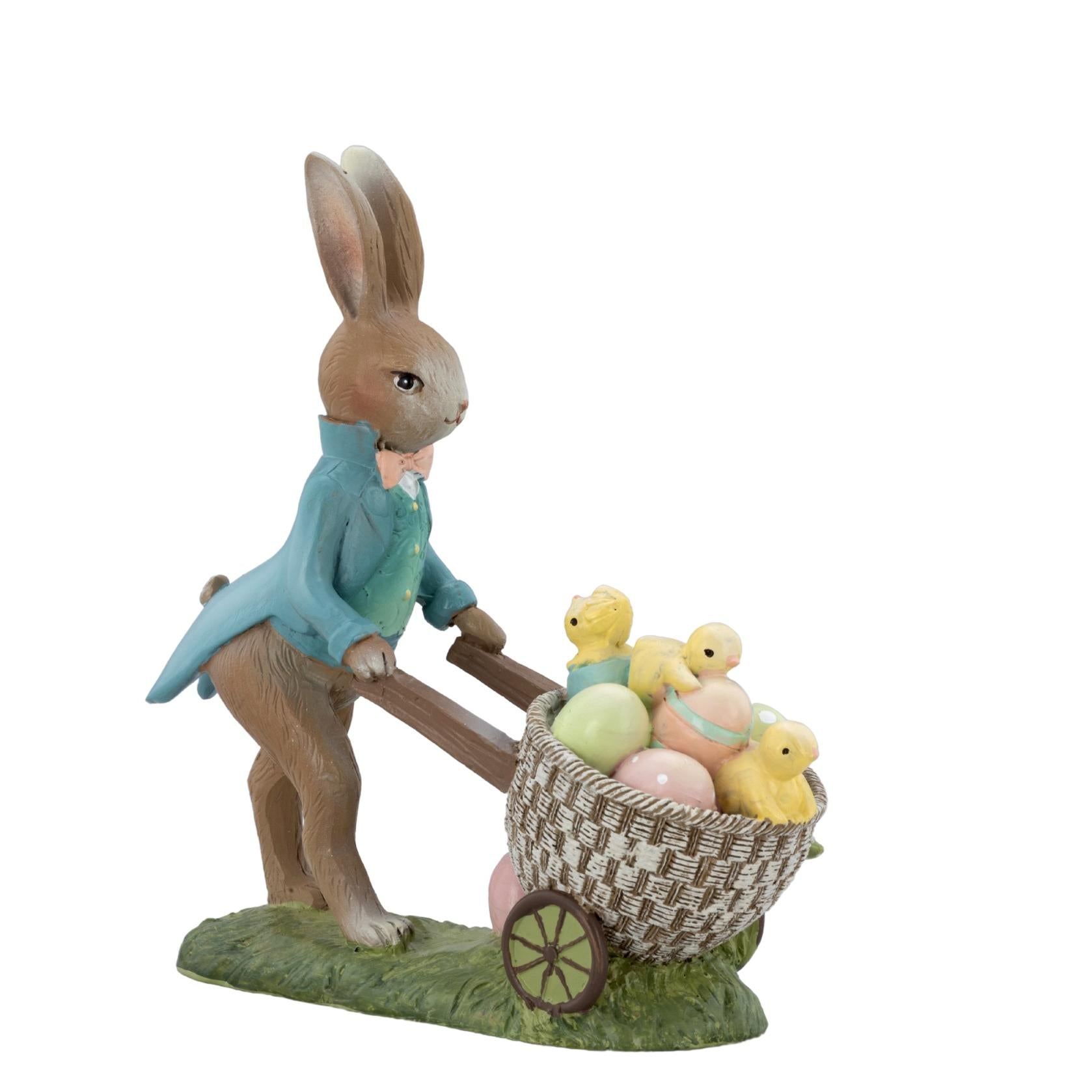 ein nostalgischer Traum - Dekofigur Osterhase mit Küken und Ostereiern im Schubkarren