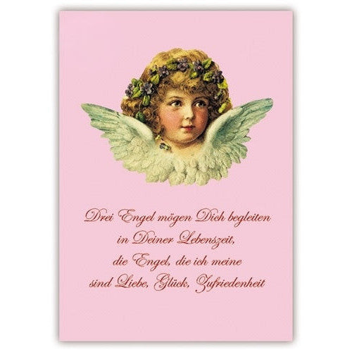 Postkarte Nostalgie "drei Engel mögen Dich begleiten"