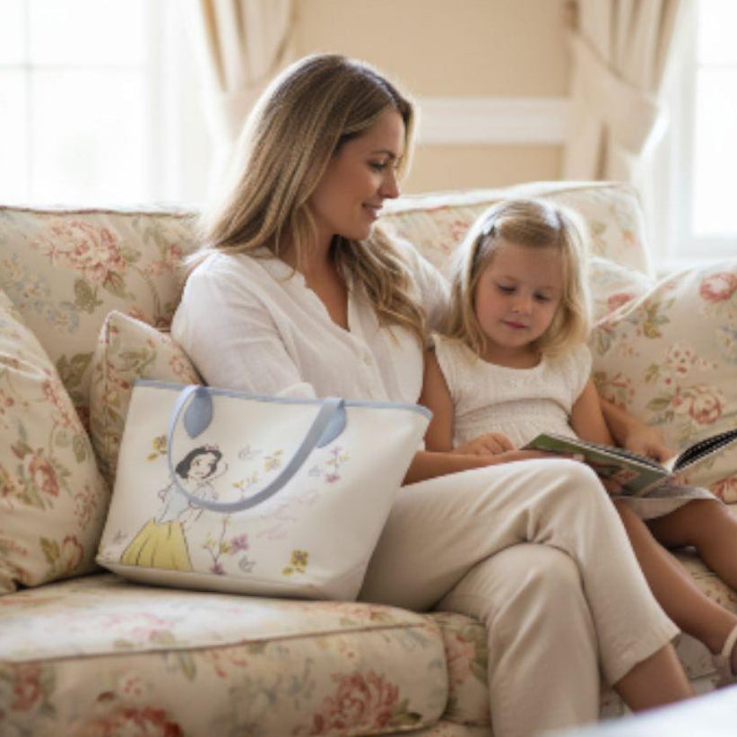 Die Schneewittchen-Tragetasche kann als Wocheneinkaufstasche oder als etwas für den eigenen Krimskrams verwendet werden. Diese Princess-Tasche hat mittellange Riemen, die ideal sind, um sie in der Hand oder über die Schulter zu tragen.